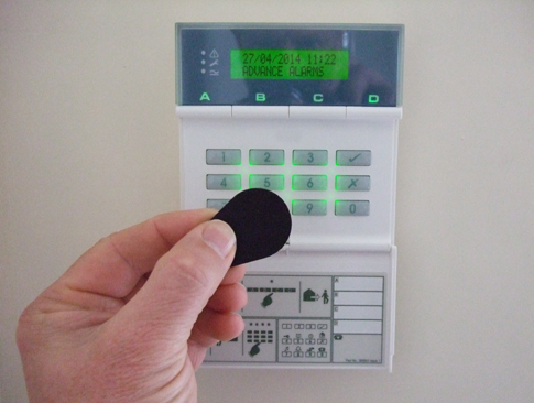 Same specification as the LCD keypad, but with the option of up to forty nine individual proximity key fobs. Each user has a key fob and a code, either will set/unset the alarm system.